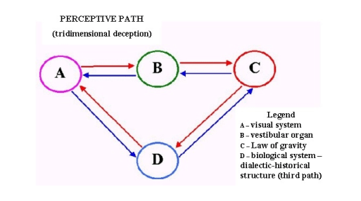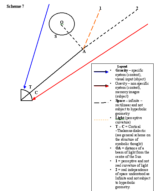 SCHEME MODIFIED ACCORDING TO THE NEW GRAVITATIONAL LAW WITH THE TRANSVERSAL EFFECTS FORMING THE UNICUM OF LIGHT, INFLUENCING THE OPTICAL-PERCEPTIVE SYSTEM THROUGH THE CORTICAL-THALAMUS DIALECTIC AND RECOGNIZING THE SPACE AAND MATTER AS INFINITE.