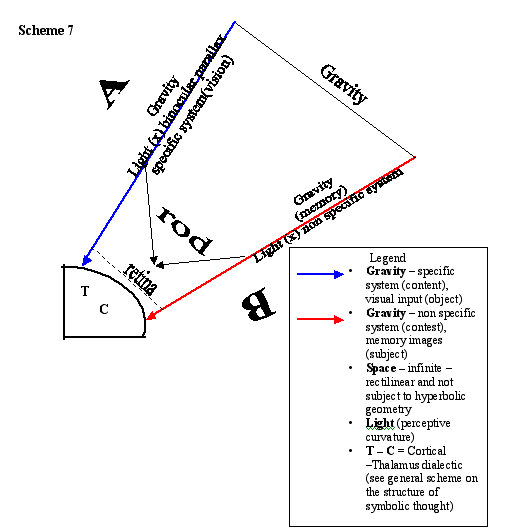 In Rods, and precisely in the retina photoreceptors, occurs the perceptive synthesis between the structural system (non-specific system B) and what is part of the vision mechanisms (non-specific system A); the gravity system affects both systems.