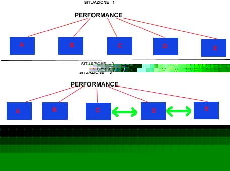 Tuttavia se un gruppo assume in maniera statica un determinato ruolo, cioe' per esempio i ragazzi di un gruppo assumono sempre il ruolo di conferenzieri e gli altri di ascoltatori, gli scambi che si verificano possono essere definiti UNIDIREZIONALI. La situazione ottimale si potrebbe attuare quando i ruoli assunti fossero 'plastici', allora si potrebbero avere GRUPPI APERTI CON SCAMBI REVERSIBILI in cui le energie del dare e del ricevere hanno un andamento circolare. Questa situazione e' la piu' difficile da realizzare poiche' necessita di un discreto livello medio di competenze da parte di tutti i gruppi. I due anni di sperimentazione della Conferenza hanno visto realizzarsi per ora la situazione di scambi unidirezionali (situazione n.2); comunque alcune nuove esperienze portate avanti nel Gennaio 1996, che descriveremo nel seguito, fanno presupporre la realizzazione di altre possibilita' e metodologie nell'ambito dell'approccio didattico precedentemente descritto. Figura 4 -- Concezione di "Gruppi Aperti" 3 Un ulteriore tentativo di apertura dei gruppi 1. Nuove esperienze 2. La Terza Conferenza 3.1 Nuove esperienze La reversibilita' del ruolo di Conferenzieri e di Ascoltatori e' un obiettivo che, per essere raggiunto, richiede il possesso da parte di tutti i gruppi di alcune competenze di base. Proprio nell'intento di stimolare i gruppi e di verificarne alcune performances sono stati effettuati tra Dicembre 1995 e Gennaio 1996 tre incontri che, pur essendo diversi dalla "Conferenza", di essa presentano le caratteristiche essenziali: a. situazione strutturata b. aspetto culturale Sono presenti anche degli elementi nuovi: c. prima esperienza di scambi reversibili (i Gruppi C e D invitano il Gruppo E) d. vengono introdotti i Gruppi A e B aventi performances molto piu' basse I tre incontri che hanno visto partecipare solo alcuni dei ragazzi appartenenti ai vari gruppi, hanno offerto queste tre situazioni: 1. MENTAL MEMORY (i Gruppi C e D invitano il Gruppo E) 2. GIOCO DELLE PAROLE (i Gruppi C e D invitano il Gruppo E) 3. ASCOLTO MUSICALE (il Gruppo E invita i Gruppi A e B) 3.1.1 Mental memory SPAZIO STRUTTURATO Il Tavolo separa gli Invitati dagli Ospitanti, ma contemporaneamente lega i partecipanti allo stesso gioco (spazio comune di azione). Fondamentale e' la presenza degli Operatori la cui posizione riconferma negli spazi quella gia' sperimentata nella Conferenza. In modo particolare l'Operatore-Coordinatore che occupa una posizione intermedia fra i due gruppi, ha il compito di: (1) formulare all'inizio le regole del gioco e riconfermare le stesse se necessario durante l'esecuzione, (2) controllare il gioco, (3) facilitare le situazioni problematiche, (4) formulare dei giudizi. Il Gioco consiste nello scoprire due carte del gioco Memory e trovare una associazione logica che giustifichi il loro assemblaggio. L'abbinamento viene giudicato dal gruppo degli "avversari" che puo' contestare alzando la mano; l'Operatore-Coordinatore controlla che si rispettino i turni e decide la distribuzione dei punti. In questo contesto si e' manifestata in generale una superiorita' dei Gruppi C e D che hanno prodotto abbinamenti logici ad ampio respiro, mentre i ragazzi del Gruppo E rimanevano piu' legati ad associazioni di tipo percettivo e quindi ad una classificazione di tipo piu' semplice (per forma, per colore, ecc.). \underline{ Nelle difficolt\`a di approccio} e di interazione la situazione strutturata e l'uso preciso degli spazi e dei ruoli sono stati di notevole aiuto: i "padroni di casa" si sentivano in dovere di essere gentili con gli "invitati" e questi a loro volta si sentivano in dovere di "comportarsi bene" essendo "ospiti". 3.1.2 Il gioco delle parole SPAZIO STRUTTURATO (vedere lo schema precedente) Si disegna e si scrive alla lavagna il nome di un oggetto. La gara consiste nel trovare un significato diverso che questa stessa parola puo' avere (ad es. la parola "piatto"). In questo gioco si e' manifestata una netta superiorita' del Gruppo E che ha rivelato di possedere una maggiore competenza lessicale-semantica. 3.1.3 Ascolto musicale SPAZIO STRUTTURATO Il Gruppo E E' disposto a semicerchio, gli invitati (Gruppi A e B) sono seduti di fronte, ognuno ha un banchetto con sopra un foglio bianco ed una scatola di pennarelli. Lo spazio s serve come "separatore" tra le due zone, ma anche come "trait-d'union" nel momento in cui esso diventa campo d'azione. TEMPO STRUTTURATO 1. Il Gruppo E discute sui ritmi veloci e sui ritmi lenti ed ognuno esprime le proprie esperienze in fatto di musica. 2. Entrano gli Invitati (Gruppi A e B) che si accomodano nei banchetti. 3. Si ascolta tutti assieme della musica con ritmi veloci e (a) gli Invitati, su richiesta di un Operatore, eseguono durante l'ascolto delle tracce grafiche sui fogli che hanno a disposizione, (b) battono il ritmo con le mani, (c) ognuno a turno si alza e esprime attraverso il proprio movimento nello spazio S (spazio di azione) il ritmo musicale. 4. Si ascolta tutti assieme della musica con ritmo lento e gli Invitati fanno le loro esperienze di ritmo secondo lo schema precedente (a, b, c). 5. Gli Ospitanti salutano gli Invitati che escono dalla stanza. 6. Breve scambio di impressioni tra i ragazzi del Gruppo E e gli Operatori. La situazione dell'ascolto musicale rivela subito degli elementi interessanti: A. Un ragazzo del Gruppo E per la prima volta in maniera autonoma porta avanti un incarico scegliendo le musiche e proponendole il giorno dell'incontro. La consegna era stata quella di presentare agli Invitati due ritmi opposti: il "veloce" e il "lento". B. Si crea tra i due gruppi molto differenti per performance una relazione che E' di "tipo culturale", ovvero di scambio di conoscenze. In effetti, pur non essendo possibile un vero e proprio scambio a livello verbale, si attua ugualmente la comunicazione "culturale" nel momento stesso che i ragazzi dei Gruppi A e B mostrano la loro produzione grafica all'altro gruppo (Gruppo E), quando si s