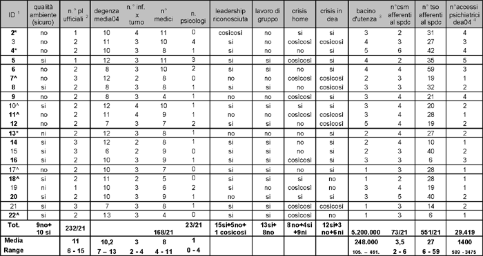 Il numero di CSM afferenti ai SPDC (Tabella 2)variava, in media, da 3 a 4 CSM, con un range da 2 a 6 CSM.