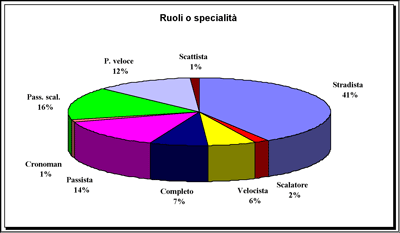Nel grafico 1 sono illustrate le percentuali dei ruoli o specialità dei ciclisti dilettanti che hanno partecipato alla ricerca.